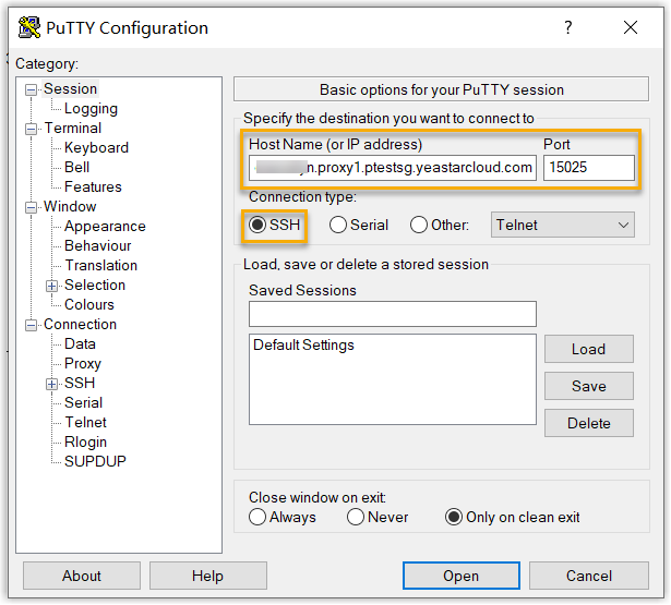 - In the Host Name (or IP address) field, enter the SSH address of PBX.
