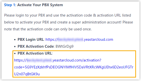 activation code provided in the welcome mail.Note: The PBX activation code can only be used once.