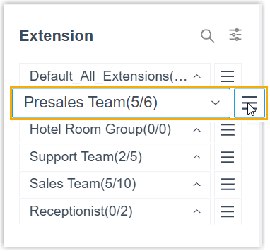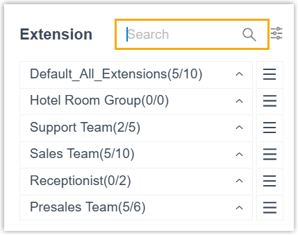Operation Description Search extension You can use the search box to quickly find extensions by name, number, extension group, or department name, with support for fuzzy search.