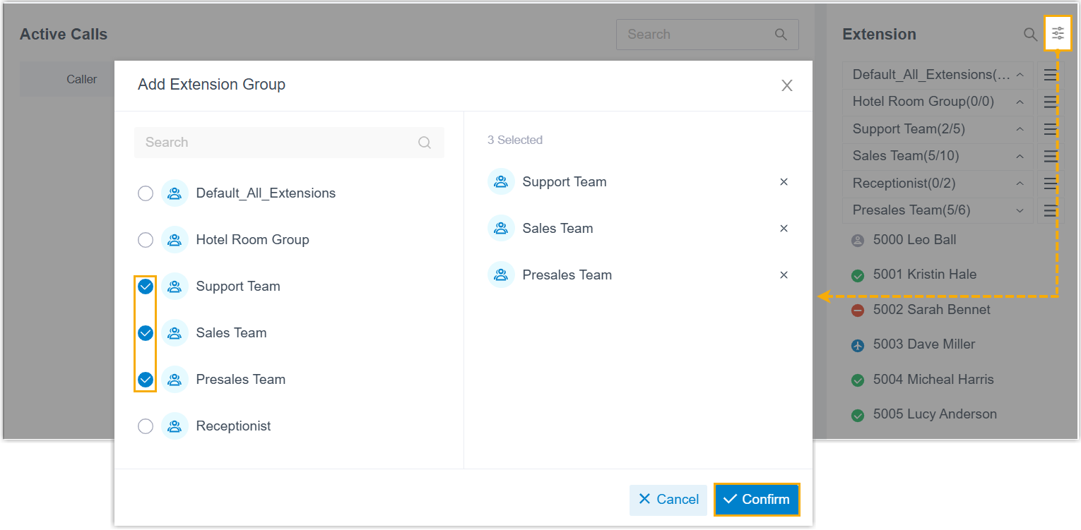 - You can easily check the online status, presence status, and call status of extension users.