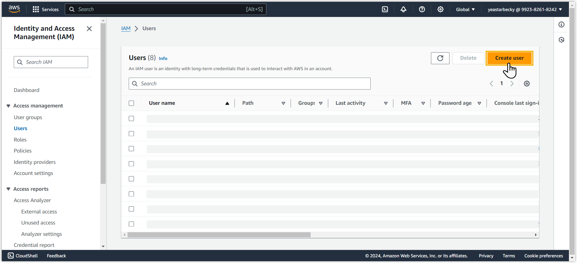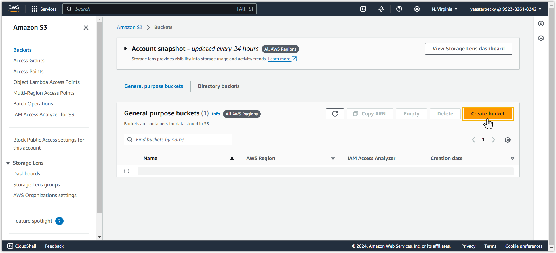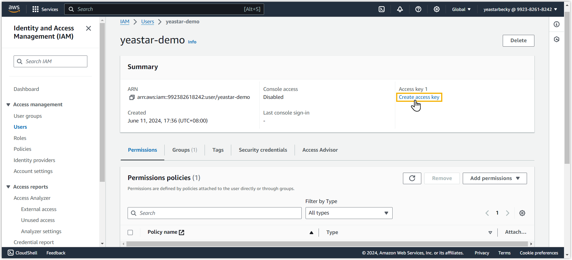 - Create an IAM user and grant the user full access to Amazon S3 bucket.