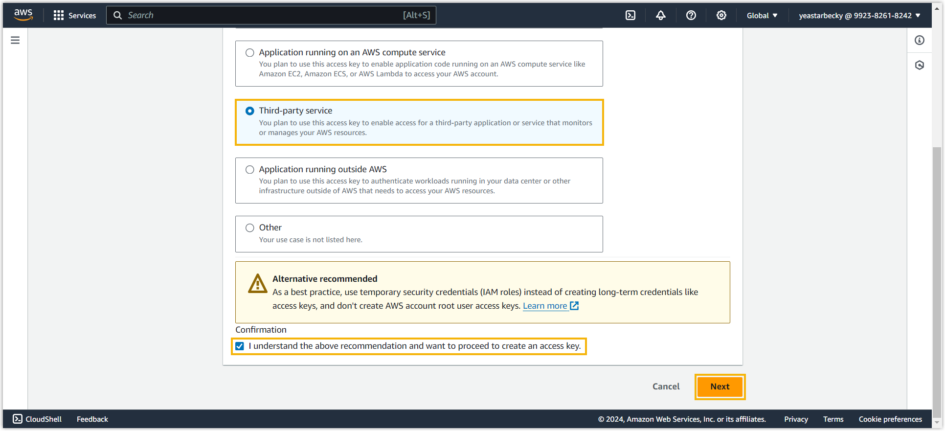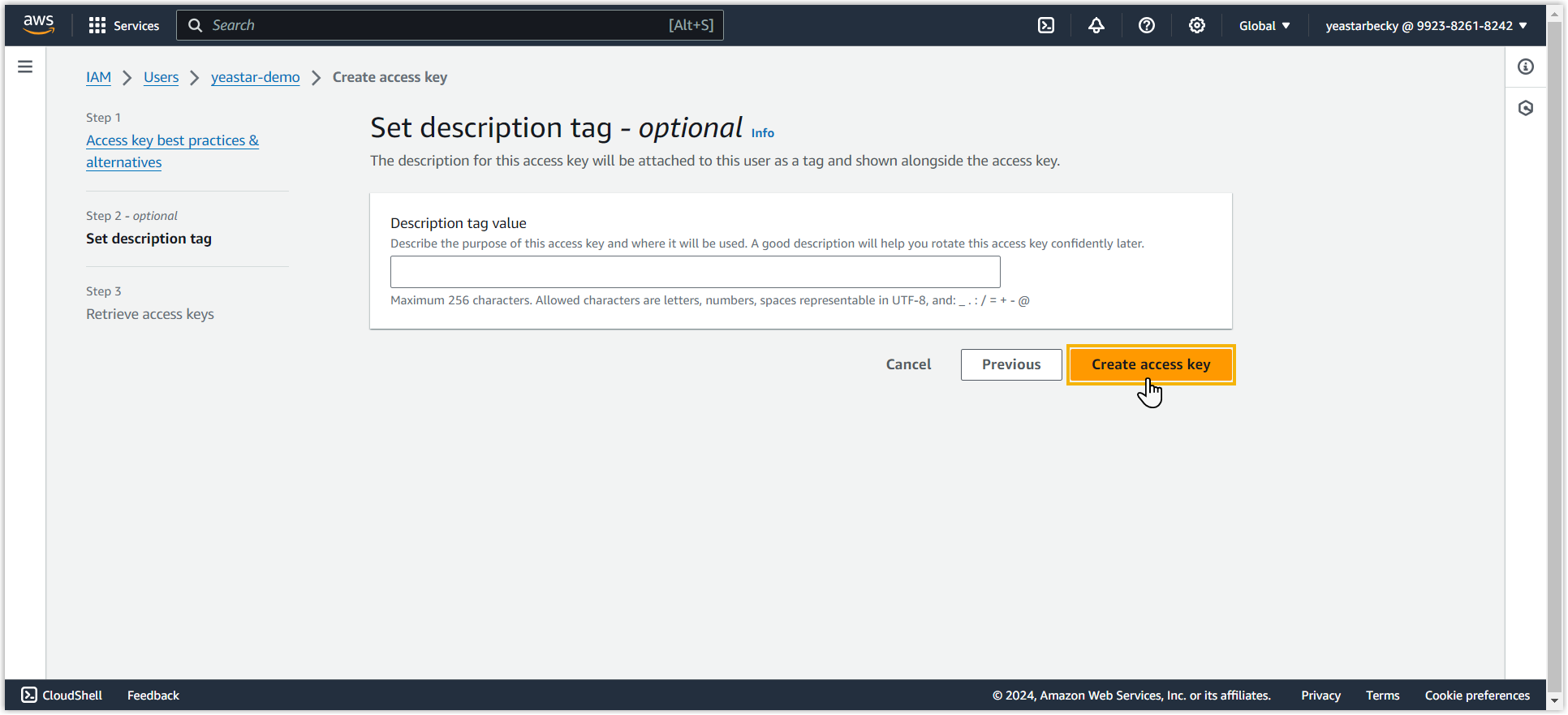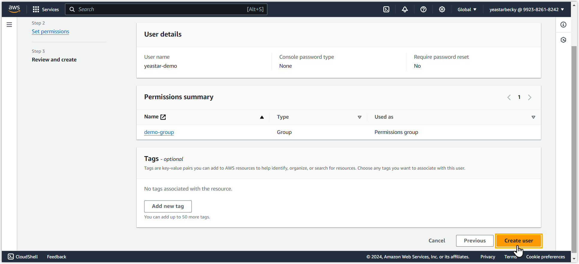 Step 1. Create an IAM user with full access to Amazon S3 bucket on AWS