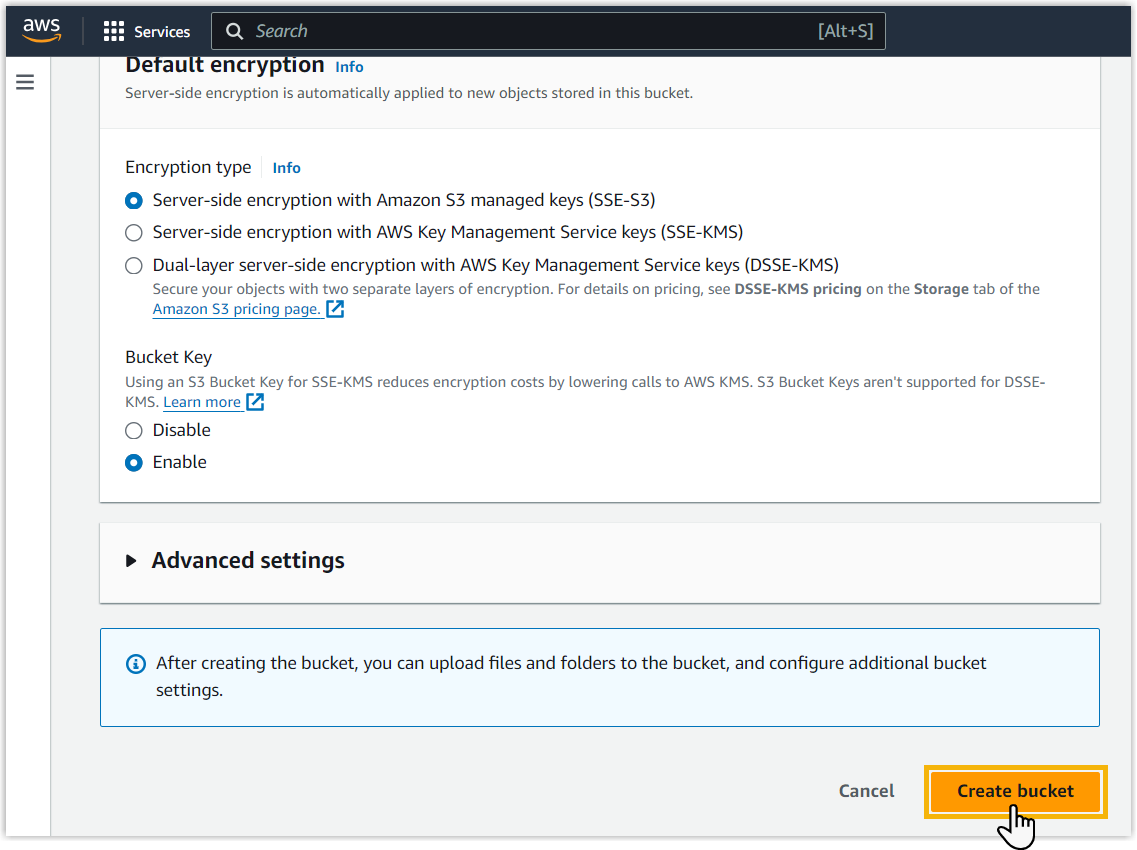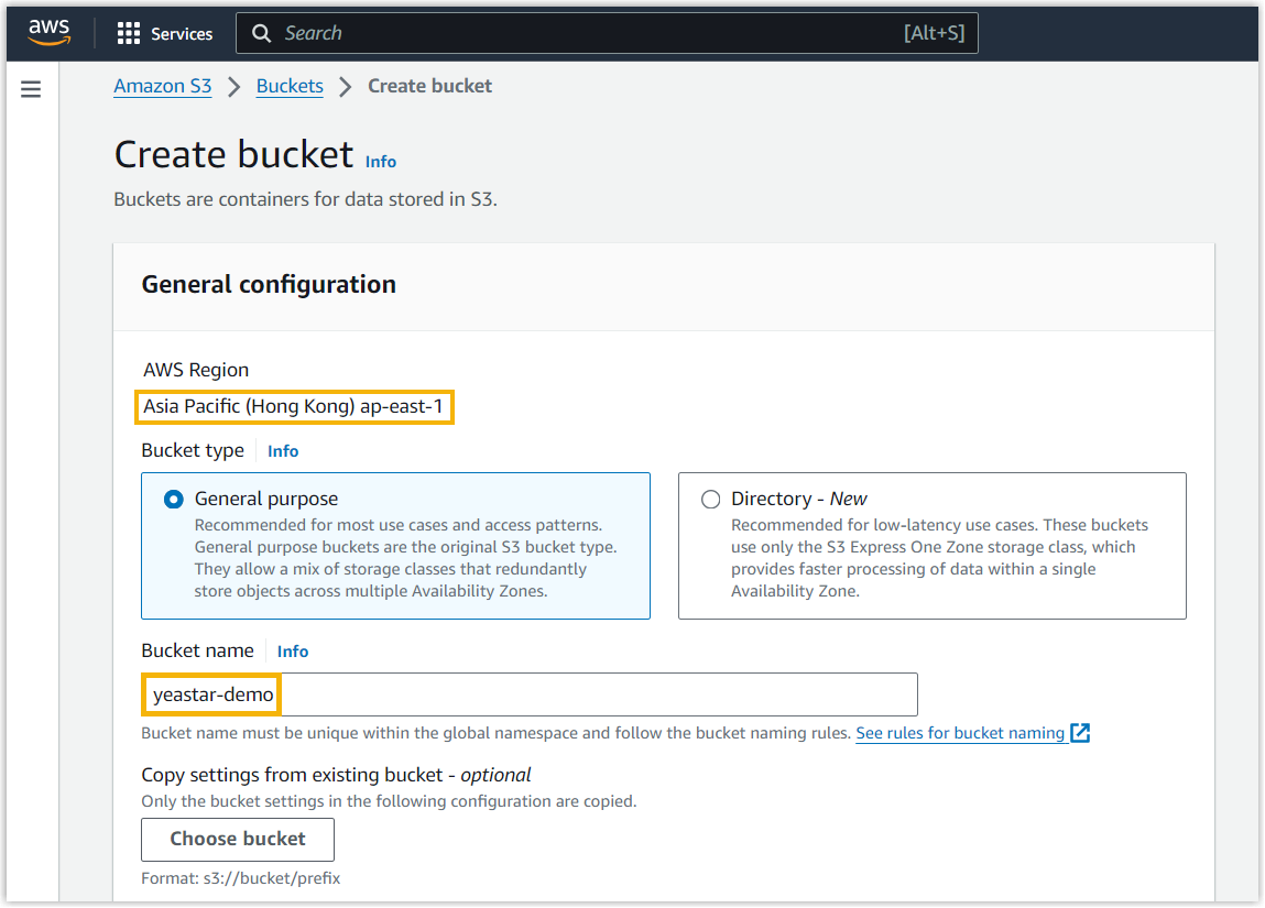 create an S3 bucket.Note: To minimize latency and costs and address regulatory requirements, choose a region that is closest to your PBX server.