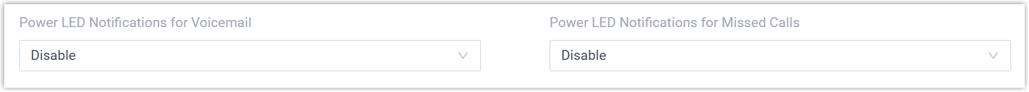 - Power LED Notifications for Missed Calls: Configure whether the phone's power LED indicator flashes when there is a missed call.