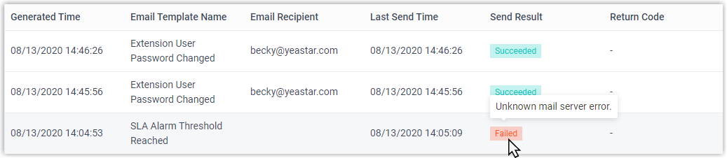 Email sent logs allow you to monitor mail delivery and provide you with error