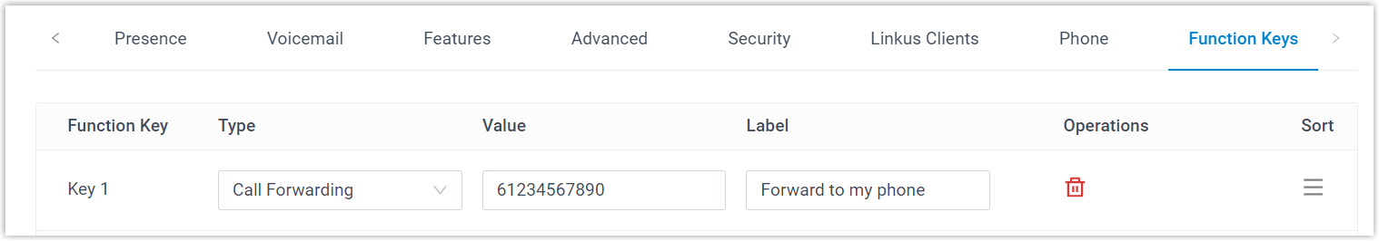 - Label: Optional. Enter a value, which will be displayed on the phone screen.