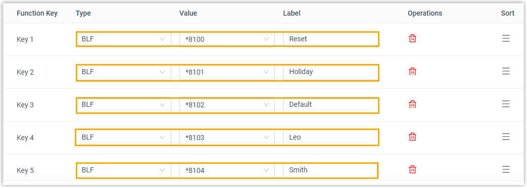 The function key settings are automatically updated on the phone and different BLF LED indicates different status.