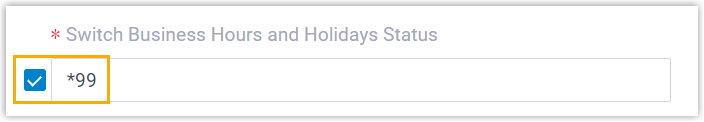 - Value: Enter the feature code of Switch Business Hours and Holidays Status. In this example, enter *99.