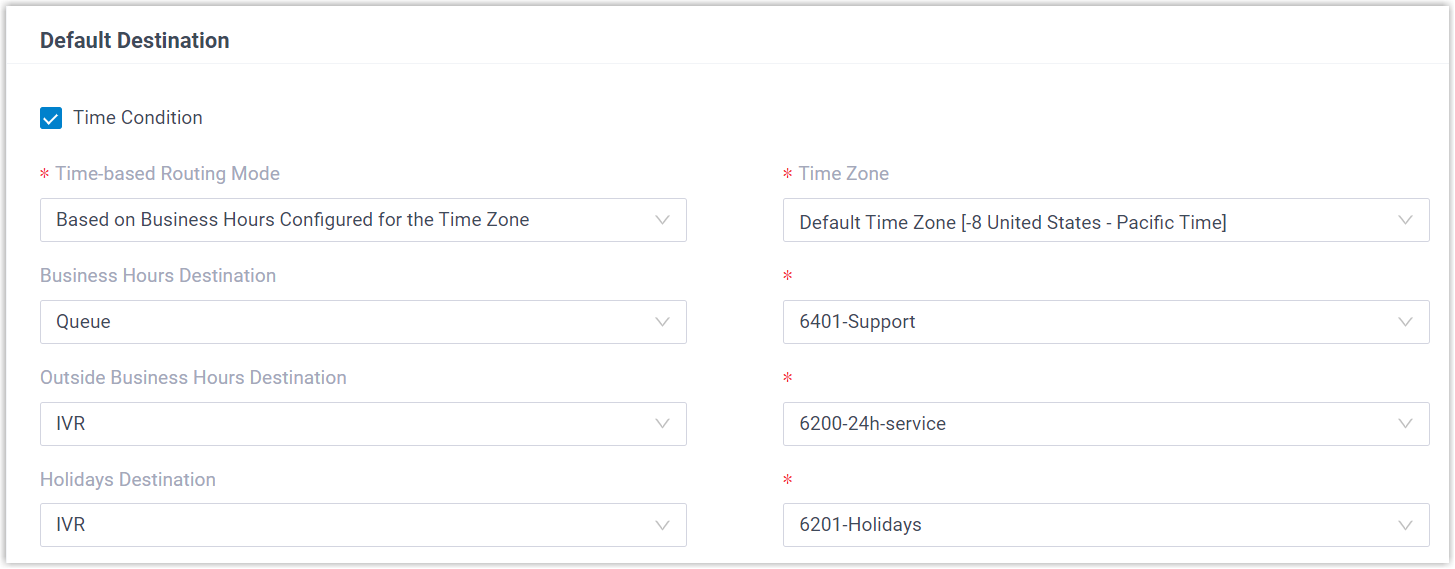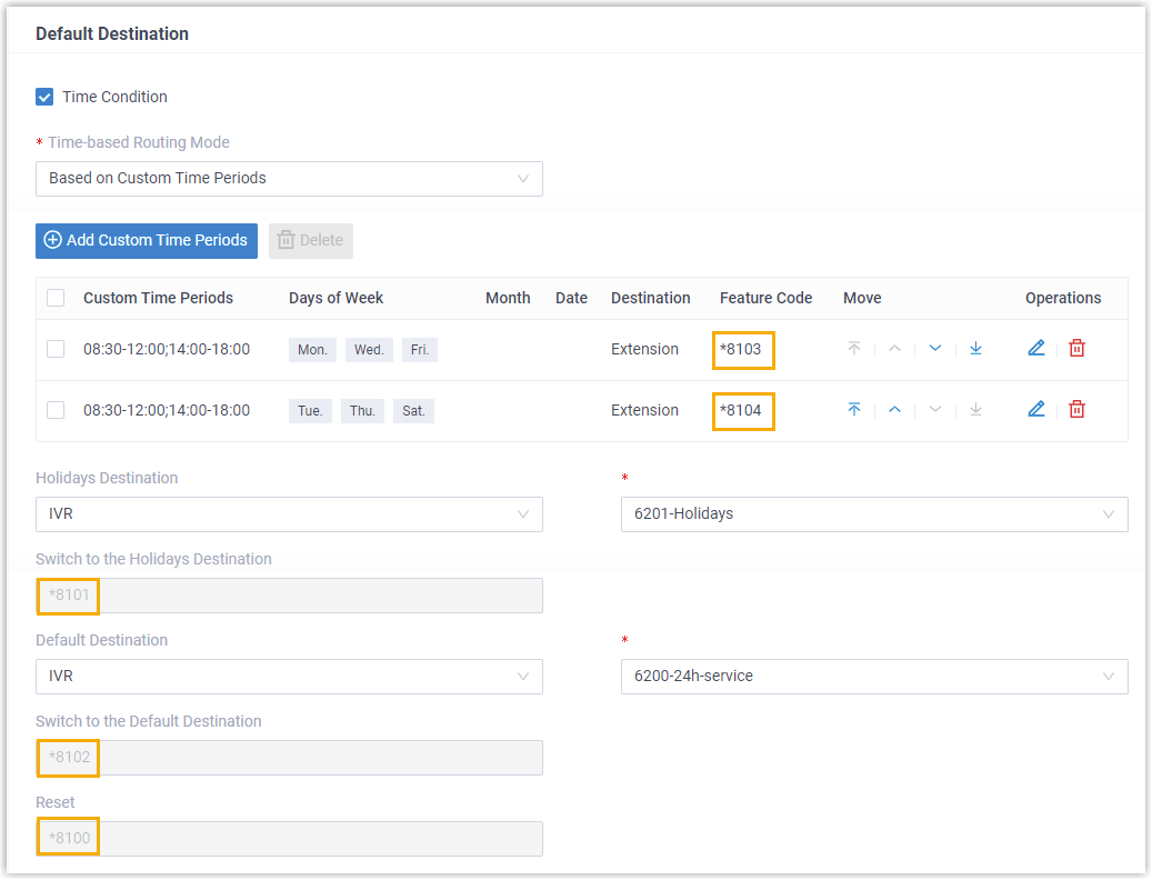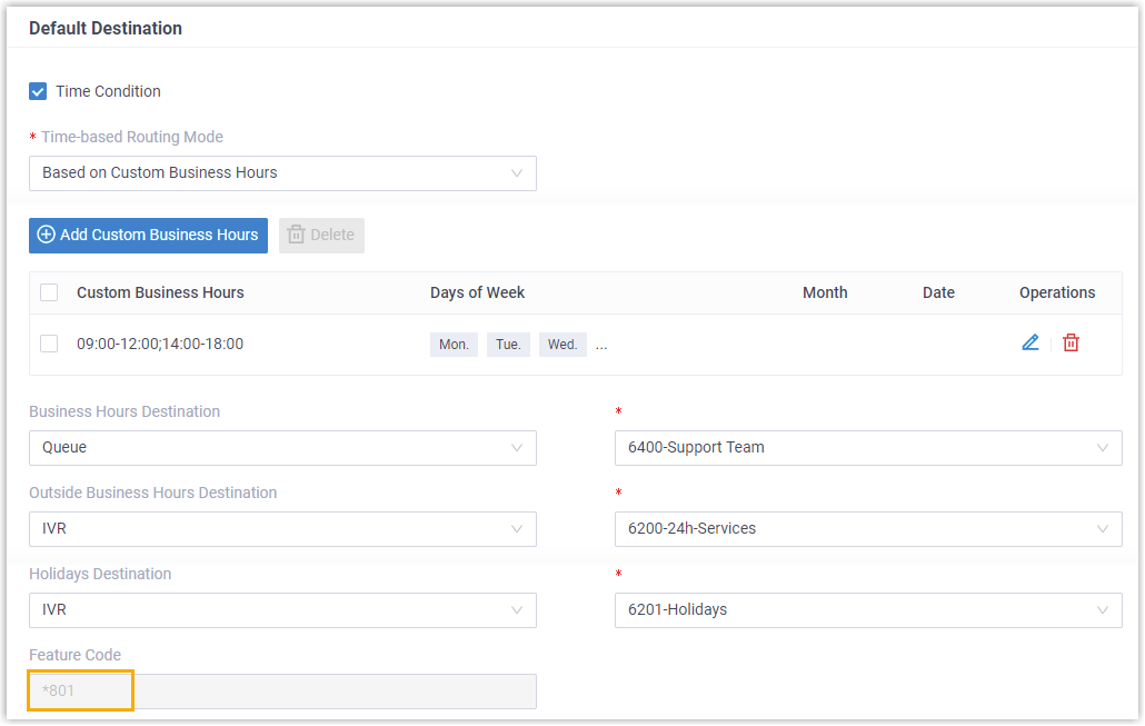 - An inbound route based on Custom Time Periods