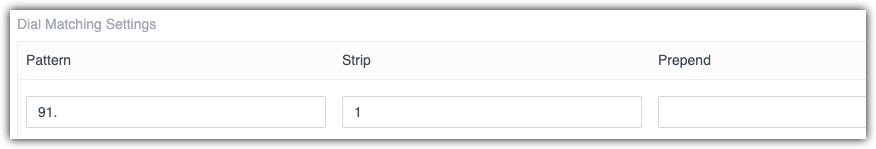 A dial pattern comprises Pattern, Strip, and Prepend.