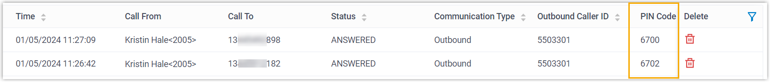 users, even if they use the same extension to dial out (Path: ).Note: Make sure that you have set the CDR to display the PIN Code column.