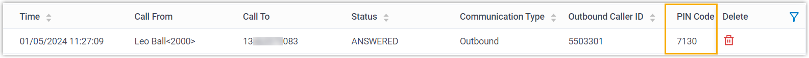 made via the outbound route (Path: ).Note: Make sure that you have set the CDR to display the PIN Code column.