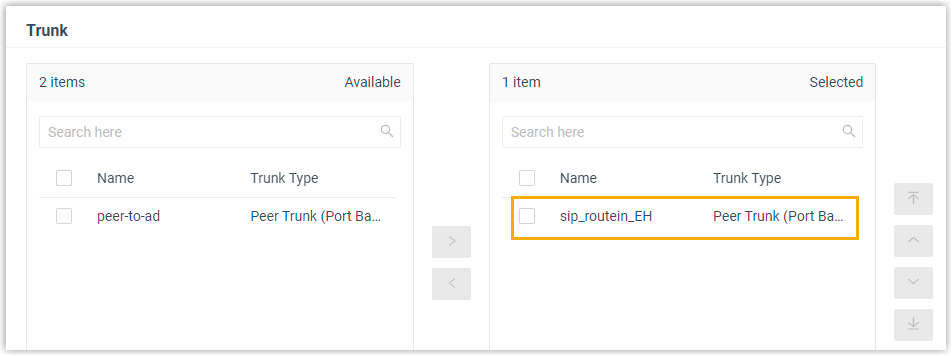 - When external users make calls to the selected trunk sip_routein_EH, the