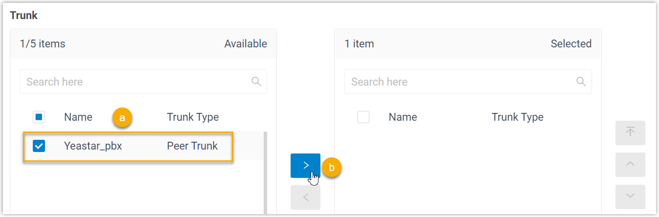 - Add the desired trunk(s) from Available box to Selected box.