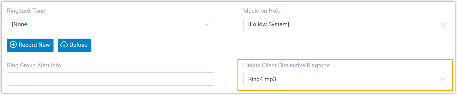 - If you select an uploaded custom ringtone (rather than a built-in ringtone), it will only apply to user's Cloud Voice App Web Client and Desktop Client for ring group calls. Instead, the Cloud Voice App Mobile Client will play the ringtone configured in the app.