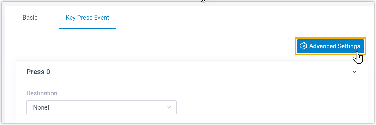 beside the desired IVR. - In the Key Press Event tab, configure key press