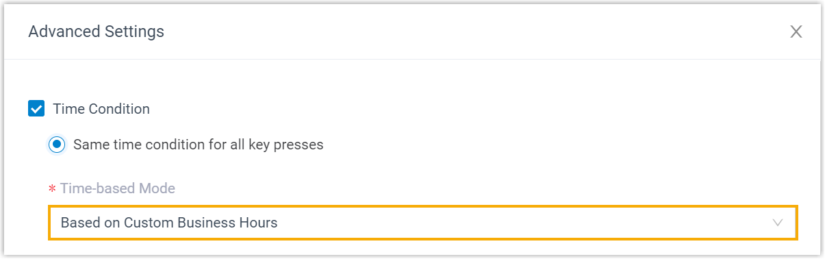 Cloud Voice supports setting IVR key press events based on time conditions, enabling the routing of incoming calls to different destinations based on the time they are received. You can apply a single time condition for all key press events or customize time conditions for each key press event.