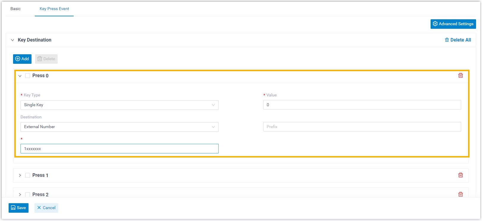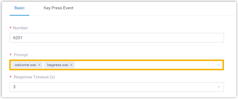 - Upload or record an IVR prompt that would instruct callers to press PIN codes to reach the corresponding destination.