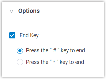 - Select Press the "#" key to end or Press the "*" key to end.