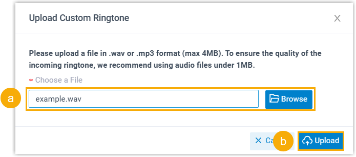 This topic describes how to upload a custom ringtone, which can be used as the Cloud Voice App distinctive ringtone for members of IVRs, queues, and ring groups, allowing them to receive calls with personalized ringtones on their Cloud Voice App clients, thus helping them quickly identify the call source.