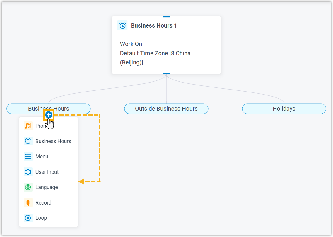 - After adding Business Hours component to a call flow,