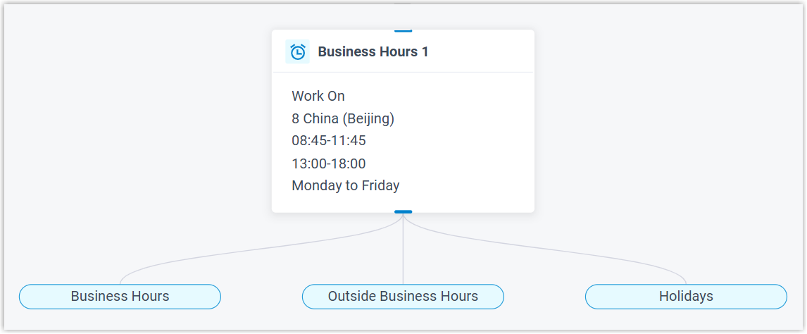 Business Hours component comes with built-in time branches - such as Business Hours, Outside Business Hours, and Holidays.
