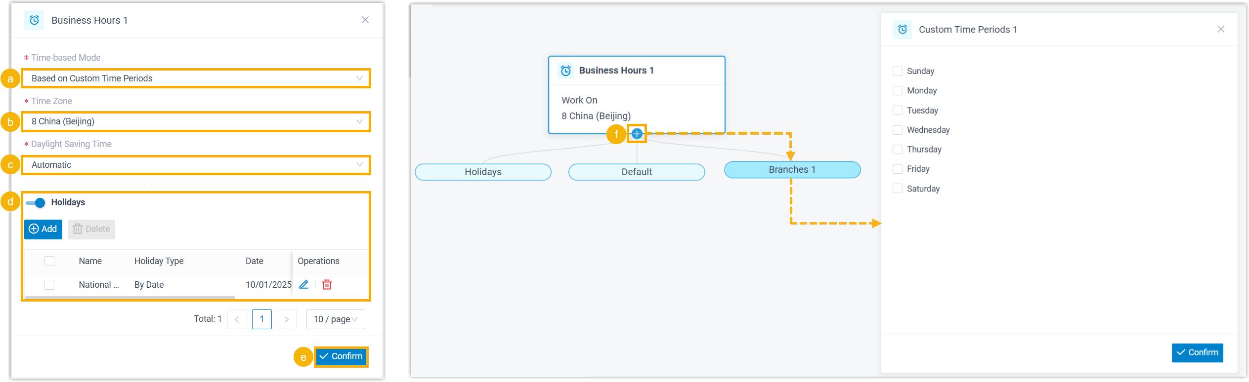 related settings to customize business hours.Note: Up to 10 time periods are supported for business hours and break hours respectively.