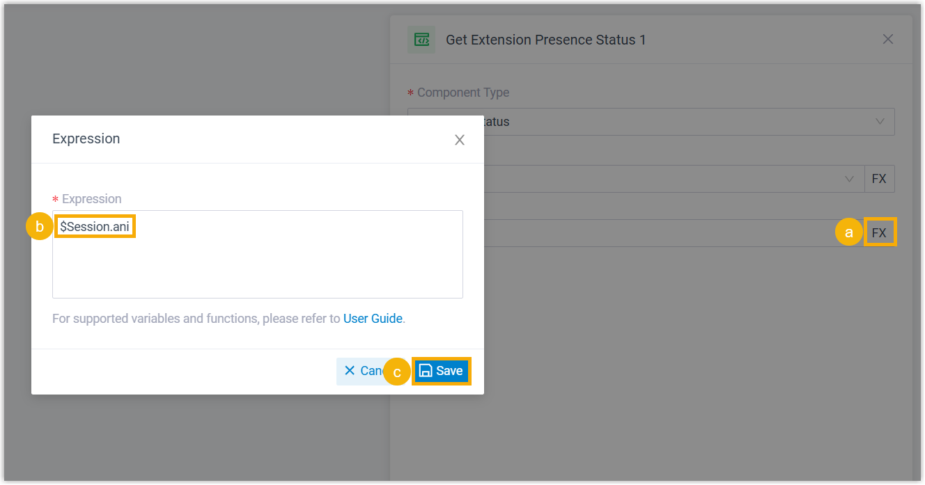 Note: For more information about the expression, see Variables and Functions in Cloud Voice Expression.