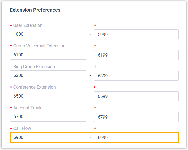 Item Description Number Retain the default extension number, or customize a number. Note:- The custom number can fall outside of the default range (6900 - 6999).