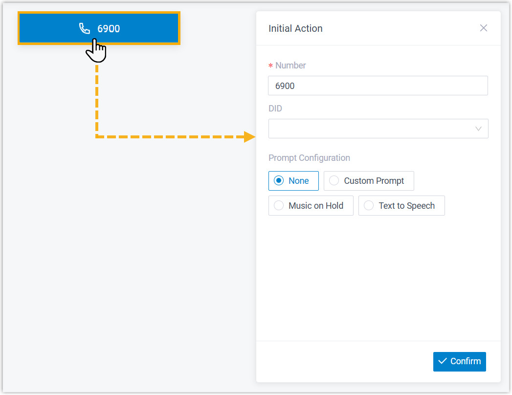 - You can add audio prompt(s) or a text-to-speech message to interact with callers.
