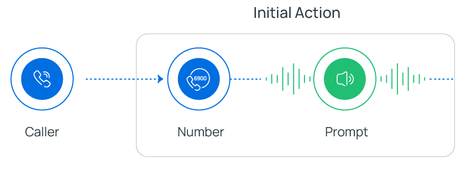 Initial Action component is the entry point of a call flow. It allows you to specify the phone number(s) that callers can dial to initiate the flow, and optionally configure an audio prompt to welcome callers or provide instructions for them.