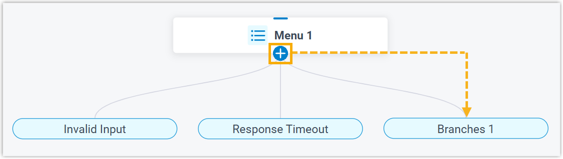 Menu component comes with two built-in branches - Invalid Input and Response Timeout, and supports up to 100 additional branches for DTMF keys. Each branch can be connected to one component, which can be any of the components listed below.