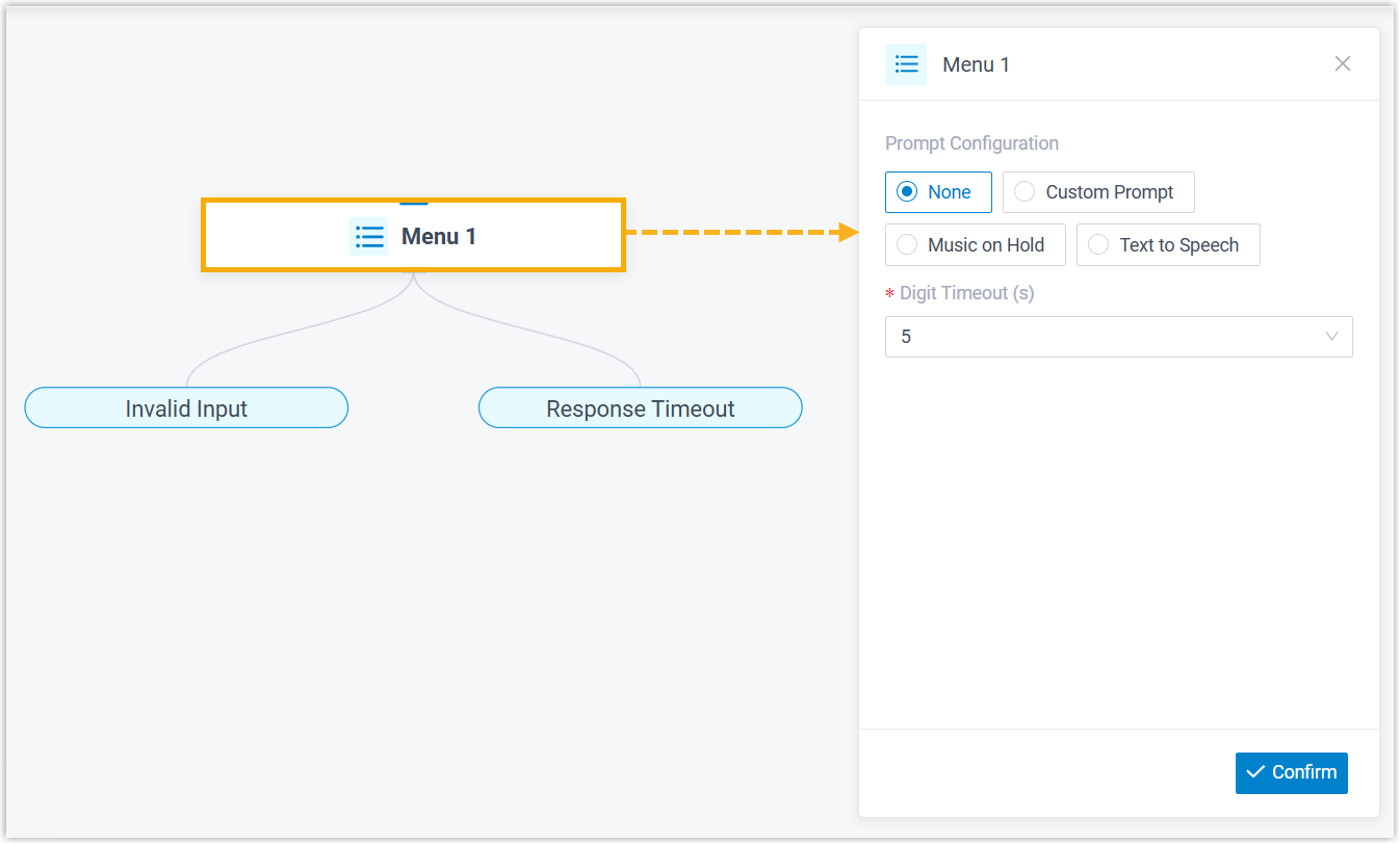 You can configure when the system stops collecting DTMF digits - either when reaching digit or response timeout or when callers press an end key. Additionally, audio prompt(s) or a text-to-speech message can be set to prompt callers for input.