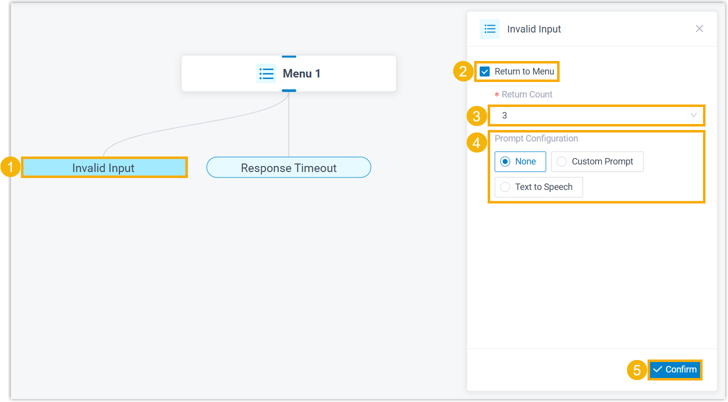 - Optional: Configure audio prompt(s) or a text-to-speech message to instruct callers to retry.