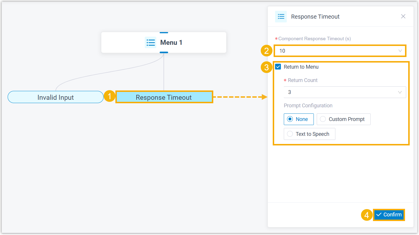 - In the Return Count drop-down list, select how many times callers can return to the component upon response timeout.