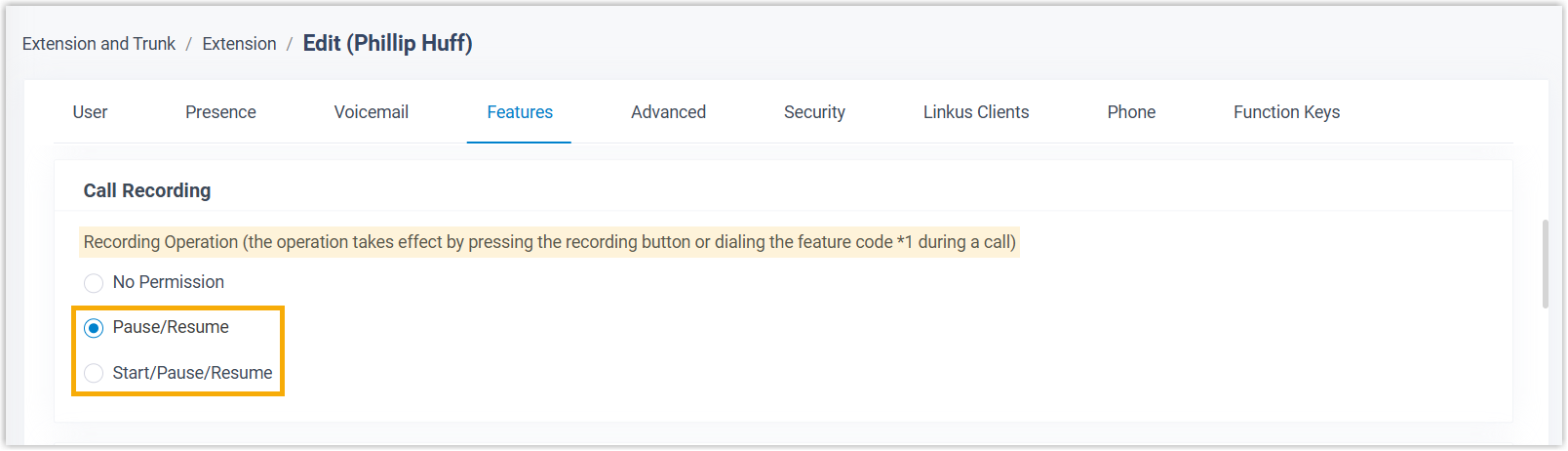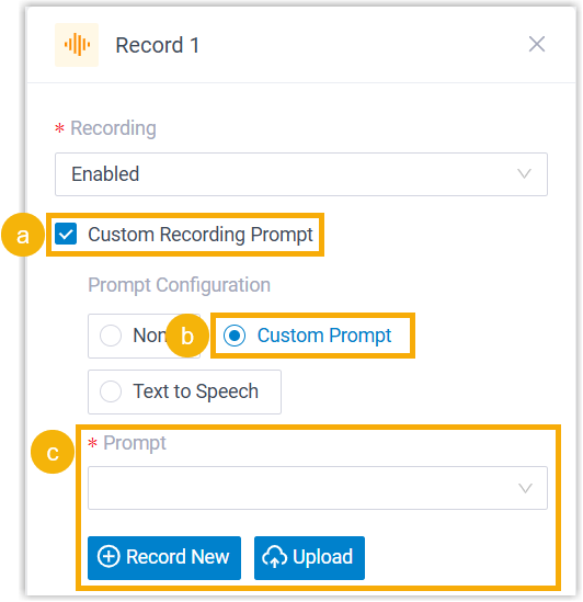 - If call recording is enabled, you can configure prompts to inform call