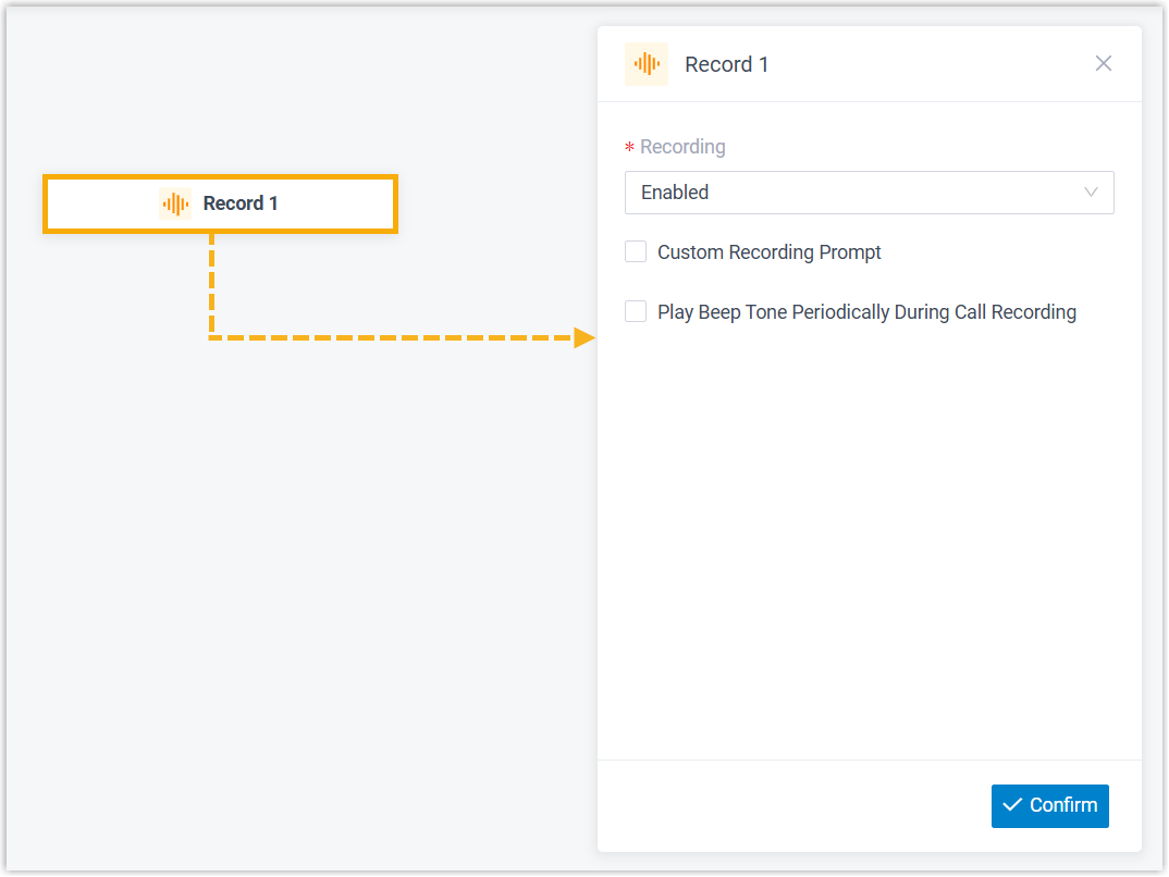 - After adding Record component to a call flow, click