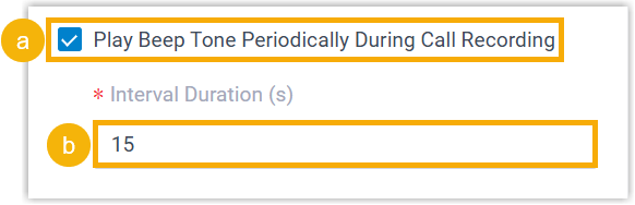 - You can play beep tones during call recording to inform call participants that the call is being recorded.