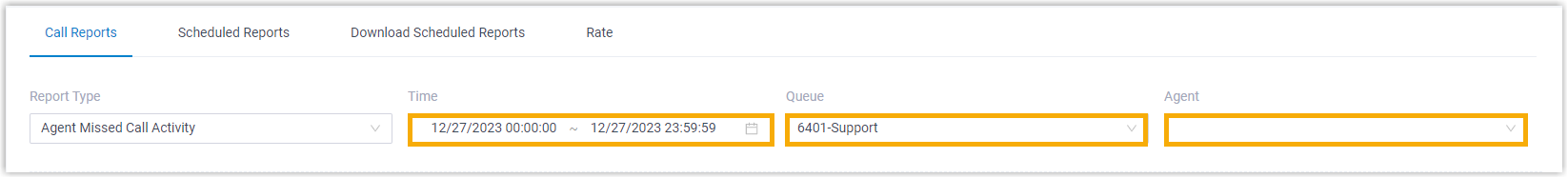We take the above report as an example to introduce the key metrics for Agent Missed Call Activity report.