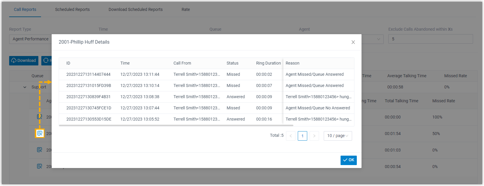 Agent Performance report provides a quick overview of the performance of individual agents and the associated call queue, as well as granular insights into agent calls. This topic introduces how to access the report and explains the key metrics in detail.