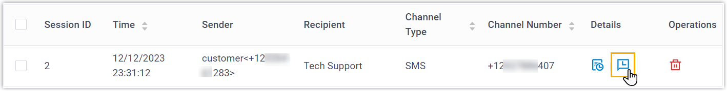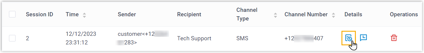 Operation Instruction External Chat Session Check operation records of an external chat session - Click