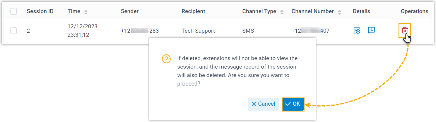 External chat logs are comprehensive records of sessions and messages coming from various messaging channels. This topic describes how to check the external chat logs (including session information, session operation records, and detailed chat histories) and how to delete the session or chat histories on Cloud Voice.
