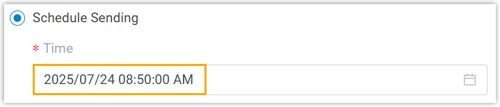 Option Description Send Now The campaign will be sent immediately after saving. Schedule Sending The campaign will be sent at a specified date and time.