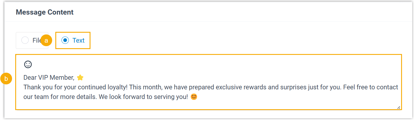 - In the text field, enter the message content and add emojis as needed.