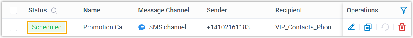 - If you scheduled the campaign, the campaign status will display as
