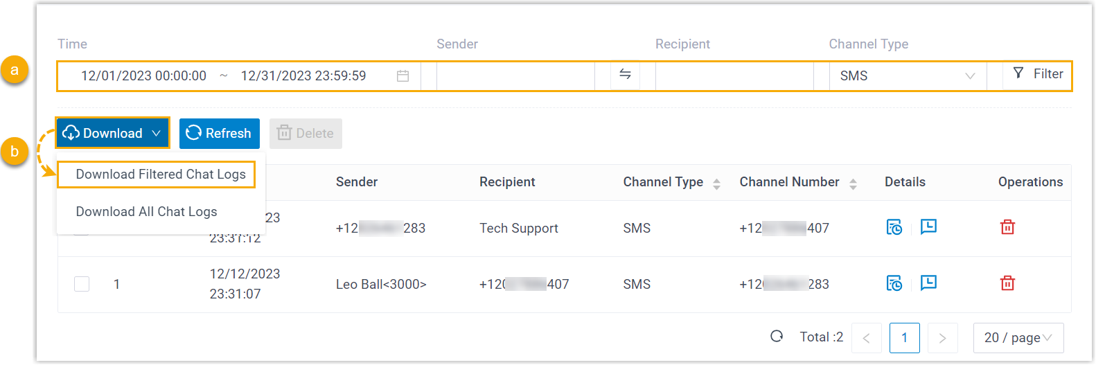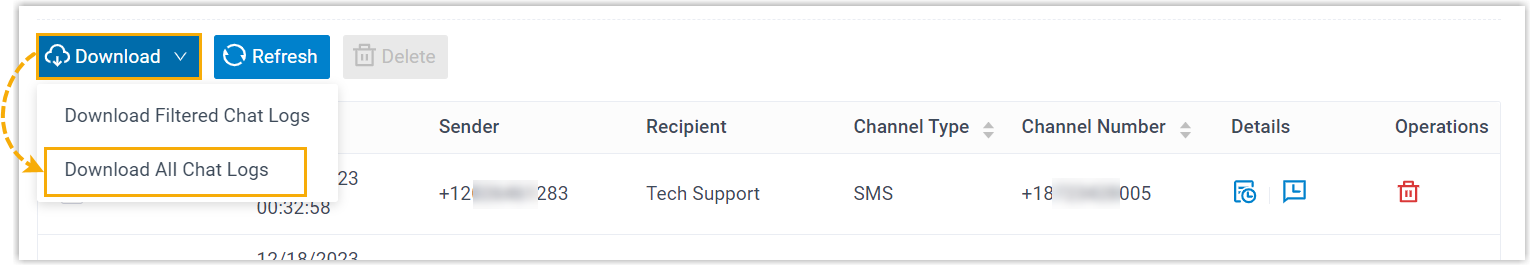 - To download all chat logs, click Download at the top
