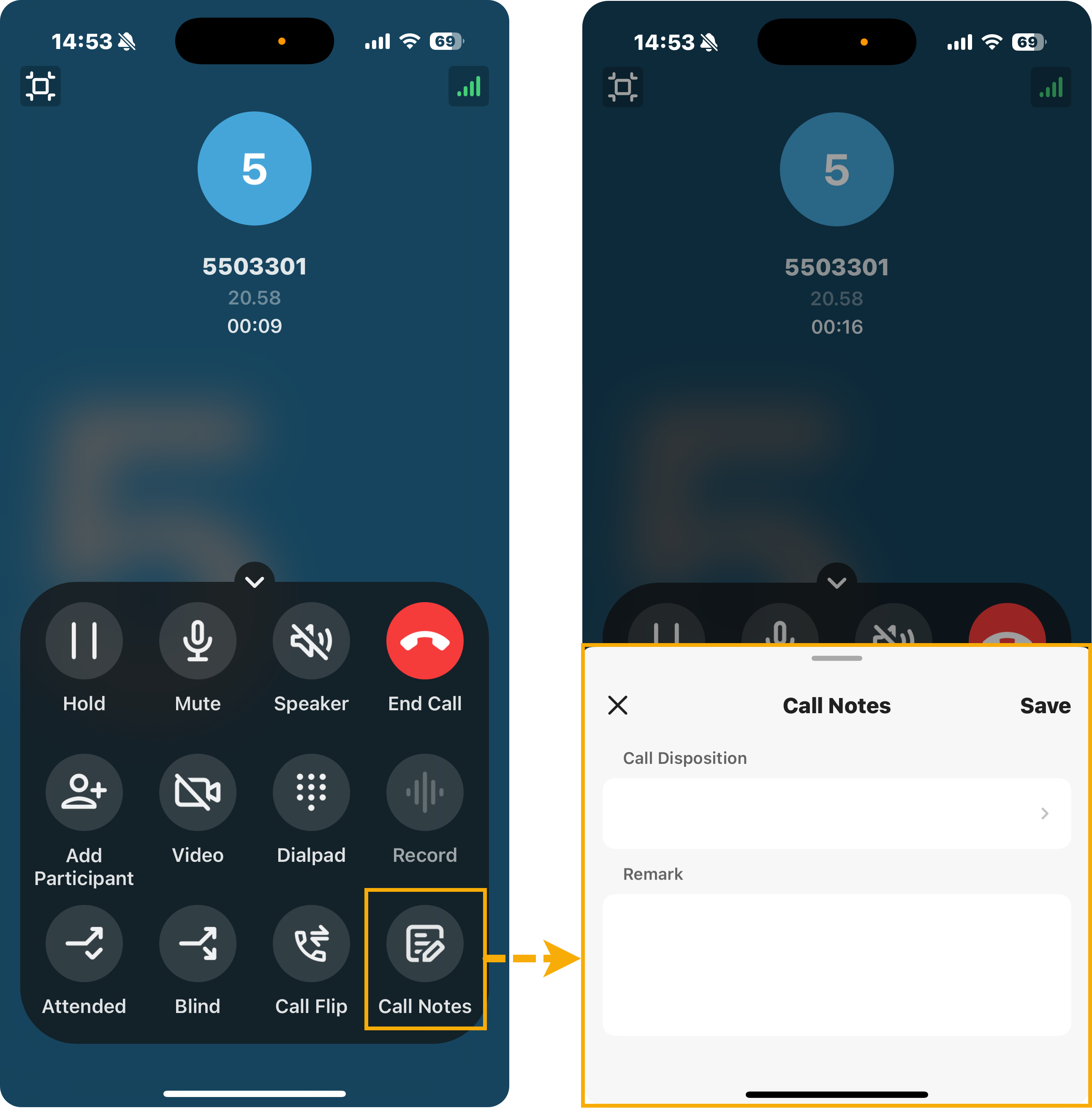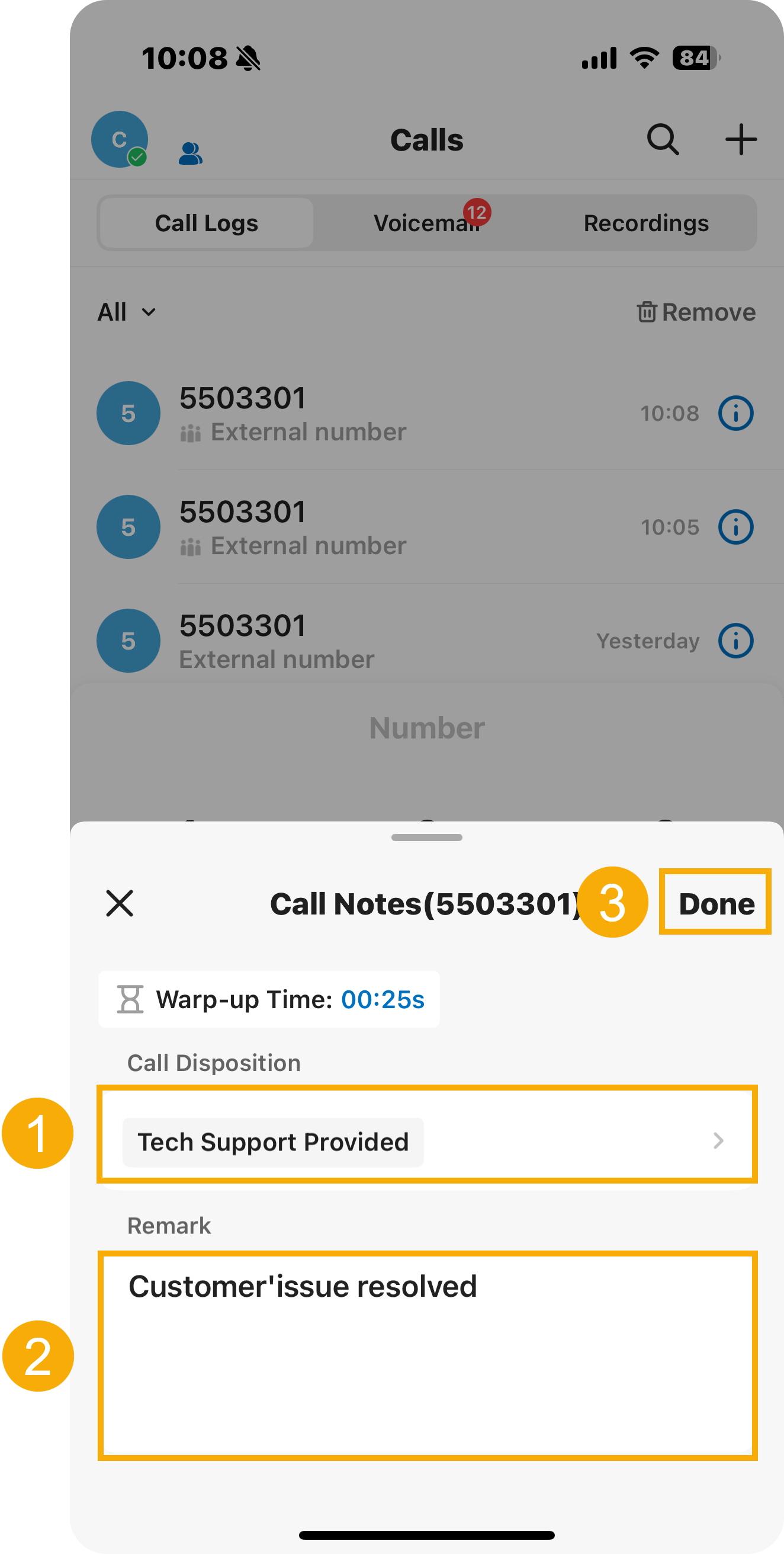panel will appear, where you can add or edit call notes.Note: After call, you can check and edit call notes in the corresponding call log. For more information, see Manage Queue Call Logs.