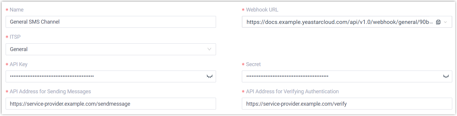 https://service-provider.example.com/sendmessage. - API Address for Verifying