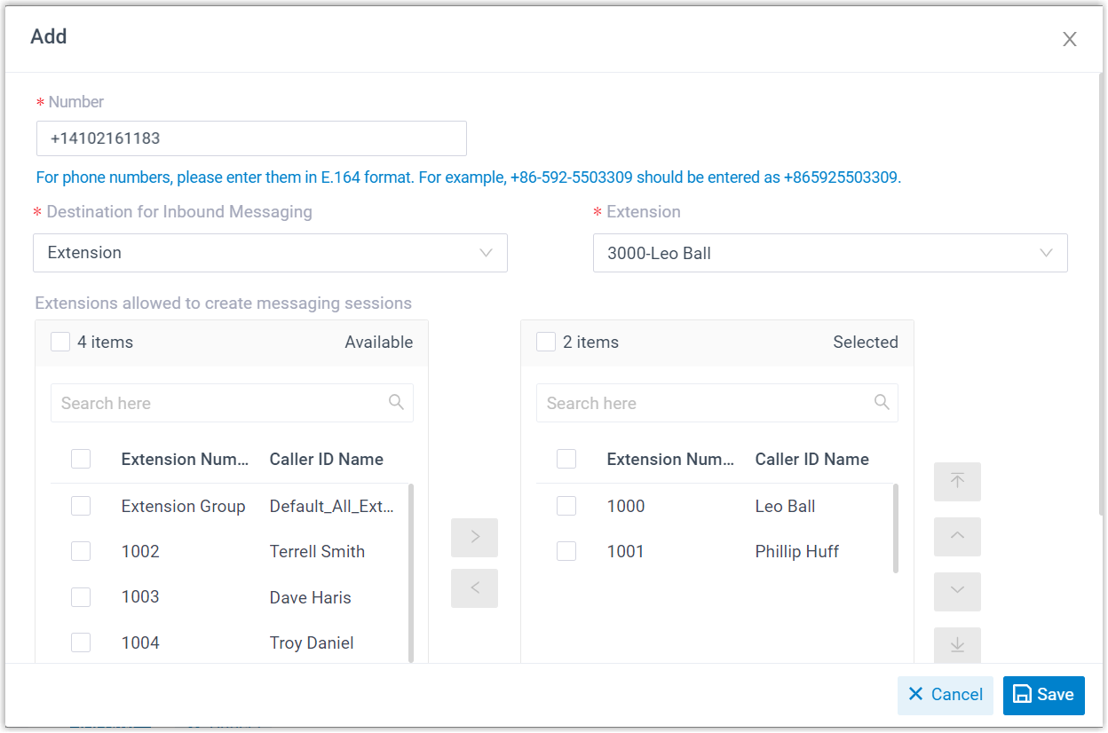 - Send text messages to the phone number added in the channel, and see if the specified PBX user can receive messages on his or her Cloud Voice App UC Client.