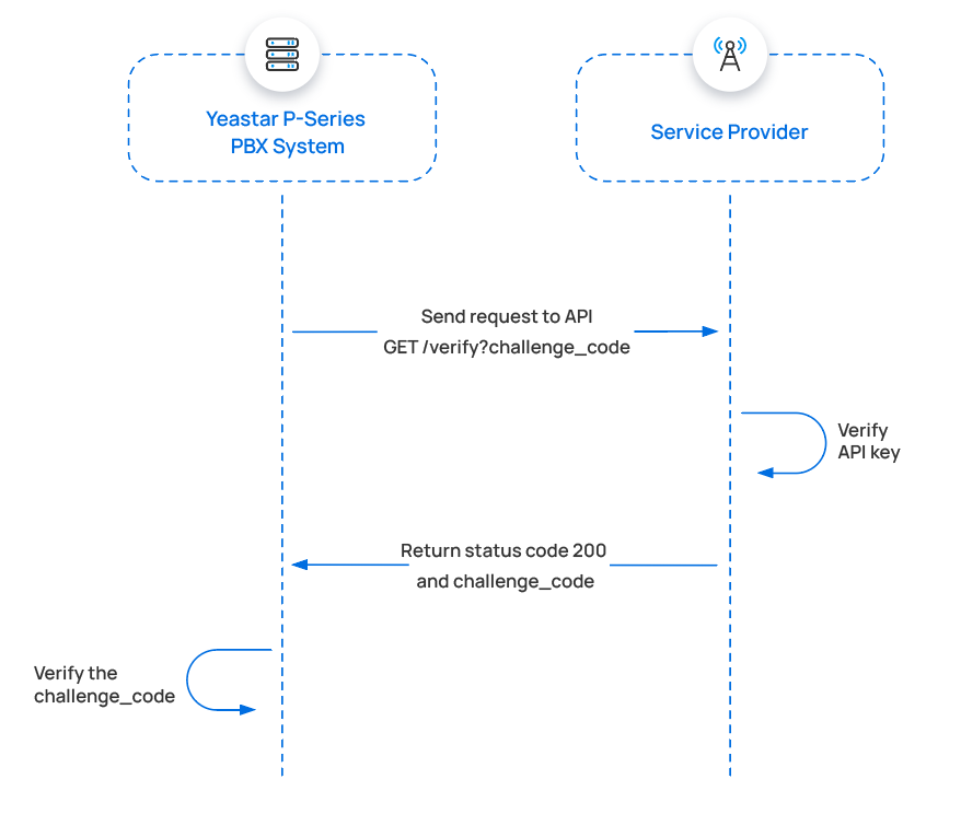 - PBX initiates an API request, containing a randomly generated challenge code.